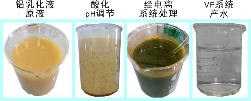 4. 產水添加合適比例的乳化劑后直接回用于生產,降低生產成本。鐵乳化液——采用VD回用處理工藝水質變化示意圖