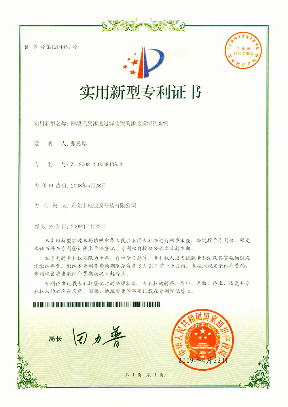 兩段式反滲透過濾裝置的滲透膜清洗系統