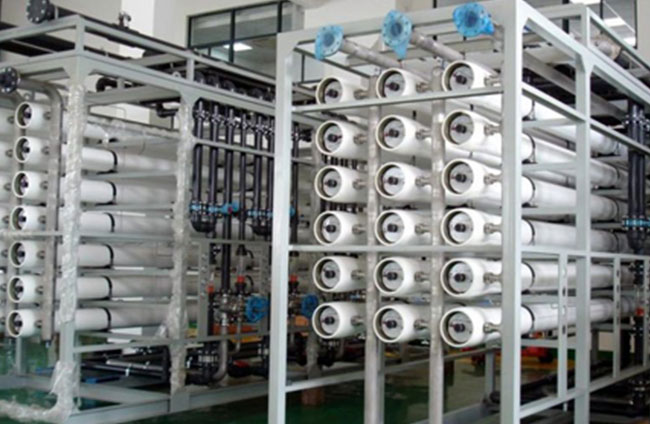 EDI裝置是將離子交換樹脂充夾在陰/陽離子交換膜之間形成EDI單元。利用樹脂制備高純水,利用水電解產(chǎn)生的H+、OH-離子在膜堆內(nèi)再生失效的樹脂。因此EDI系統(tǒng)不需要酸堿再生且能連續(xù)生產(chǎn),系統(tǒng)自動化程度高。