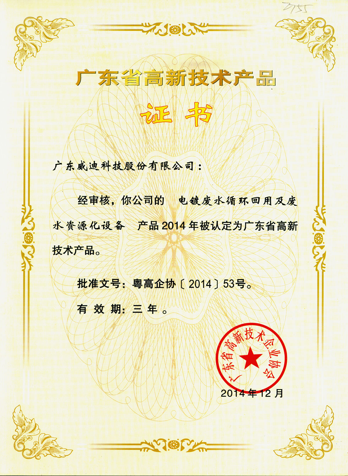 2014年廣東高新技術產品-電鍍廢水循環回用及廢水資源化設備