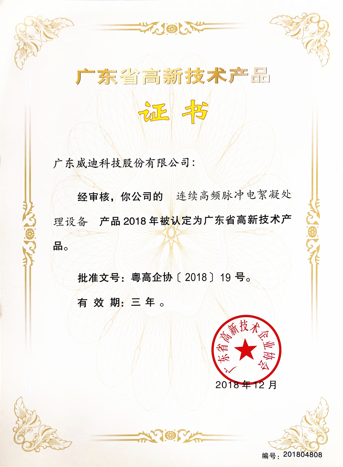 2018年廣東省高新技術產品-連續高頻脈沖電絮凝處理設備
