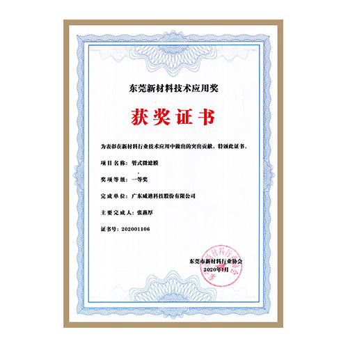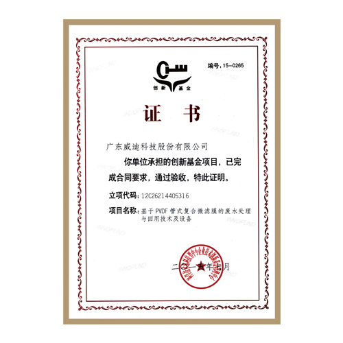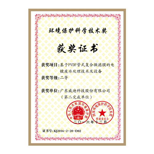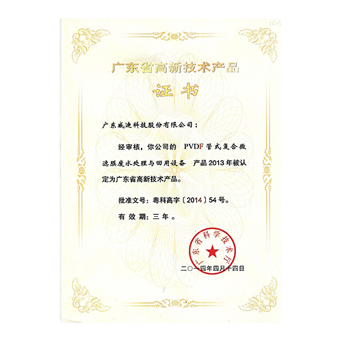 2013年廣東省高新技術產品-PVDF管式復合微濾膜廢水處理與回用系統