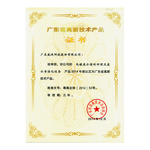 2014年廣東高新技術產品-電鍍廢水循環回用及廢水資源化設備